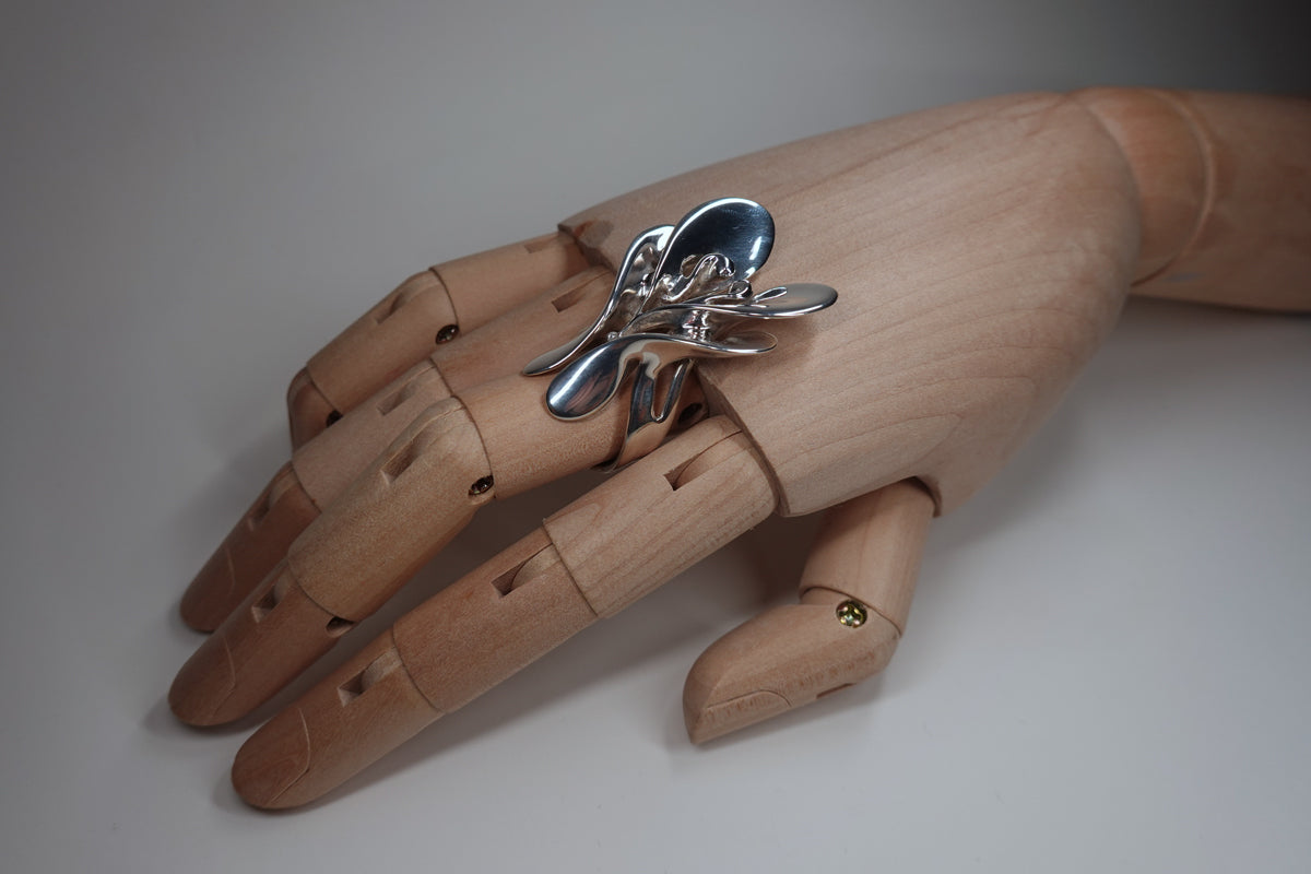 The Ophrys ring was inspired by my favourite genus of orchids that mimic the form & scent of their pollinator insects.Â